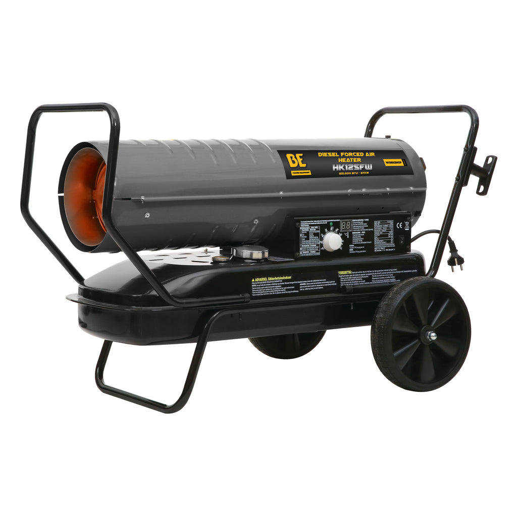 Enter BE's 37kW, 125,000 BTU Diesel Forced Air Heater. This versatile, multi-fuel heater will be reliable no matter where you use it, be it shop, garage, barn or outdoor events. In fact, wherever you need efficient, dependable heat this heater can get the job done. Its time-tested design includes BE's the built-in convenience and advanced safety features you expect from BE's products.