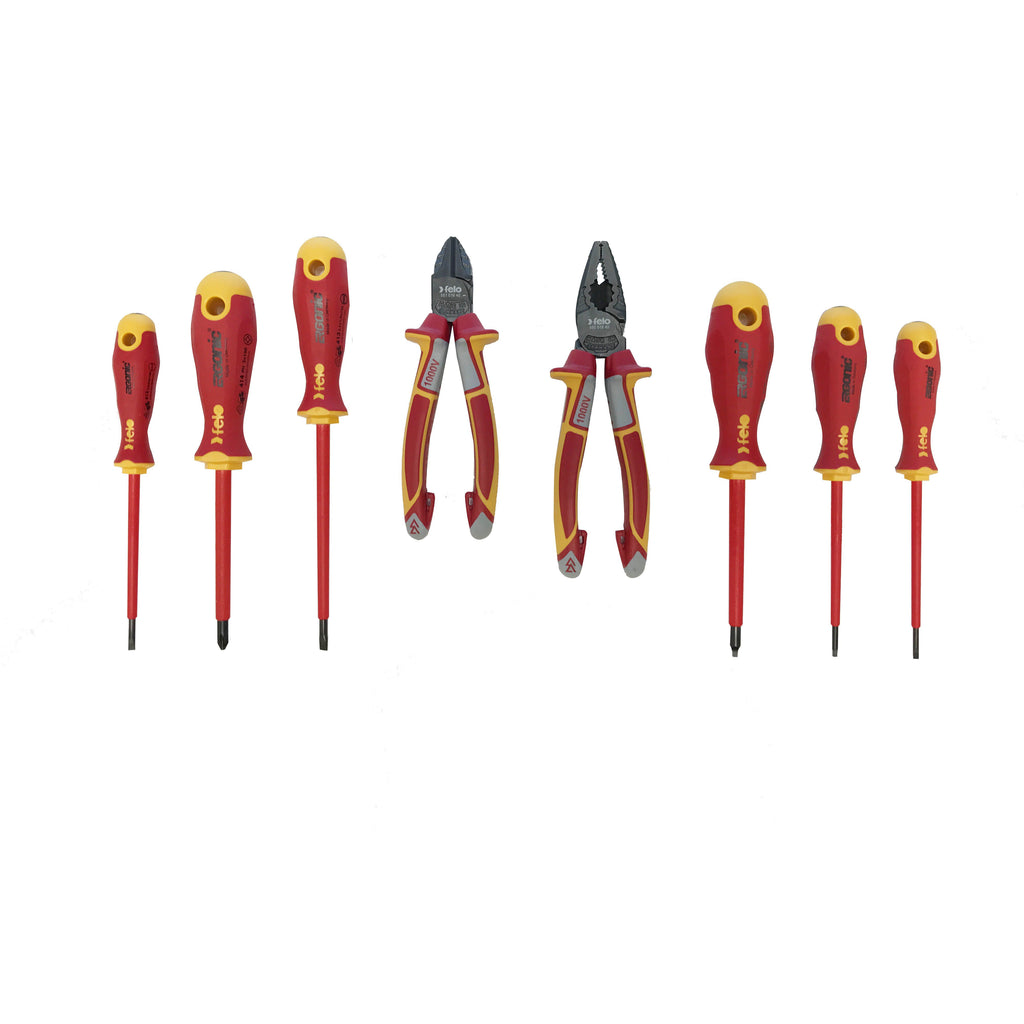 3 x Flat 3.0x0.5x100; 3.5x0.8x100; 5.5x1.0x125 2 x Square #1x100, #2x100 1 x Phillips #2x100 1 x Combination Pliers 180mm 1 x Diagonal Nippers 160mm
