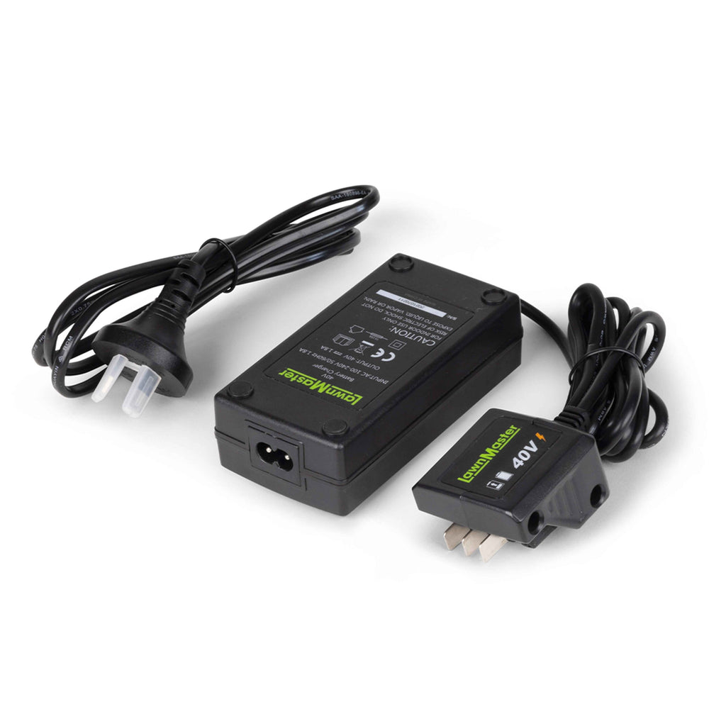 The 40V Lithium Battery Charging Cord provides a convenient and efficient way to charge your LawnMaster Lithium batteries, ensuring they are ready for optimal performance.