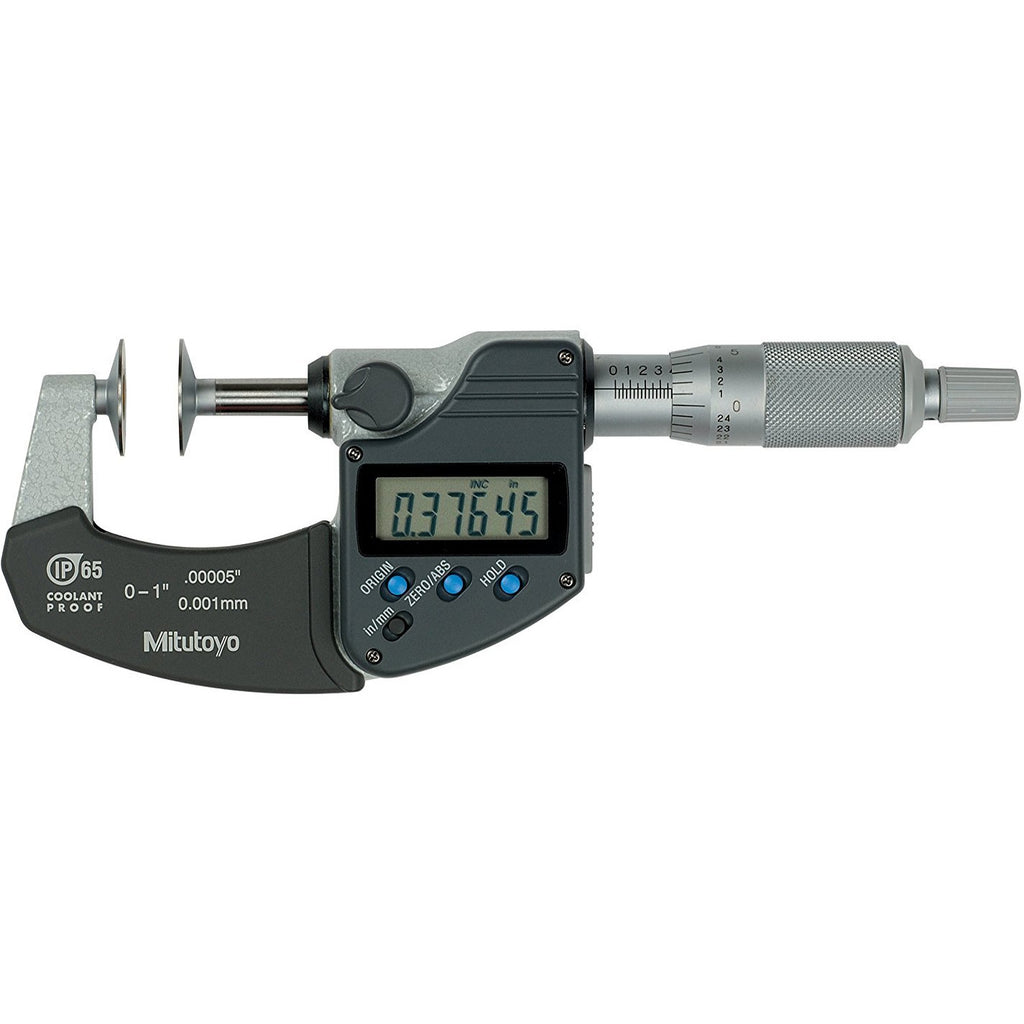Diameter of measuring disk: 20mm / .787 0.7mm / .028 (1mm: models over 100mm) edge thickness to enter narrow recesses. With Ratchet Stop for constant force. With a standard bar except for 25mm / 0 - 1 model. With SPC output (Series 323). The Series 223 is provided with a mechanical digit counter for quick reading of measurements. Supplied in fitted plastic case. (Over 100mm models supplied wooden cases)