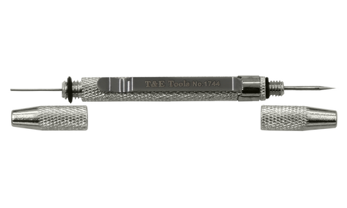- Handy double ended tool with pocket clip and screw on safety caps.