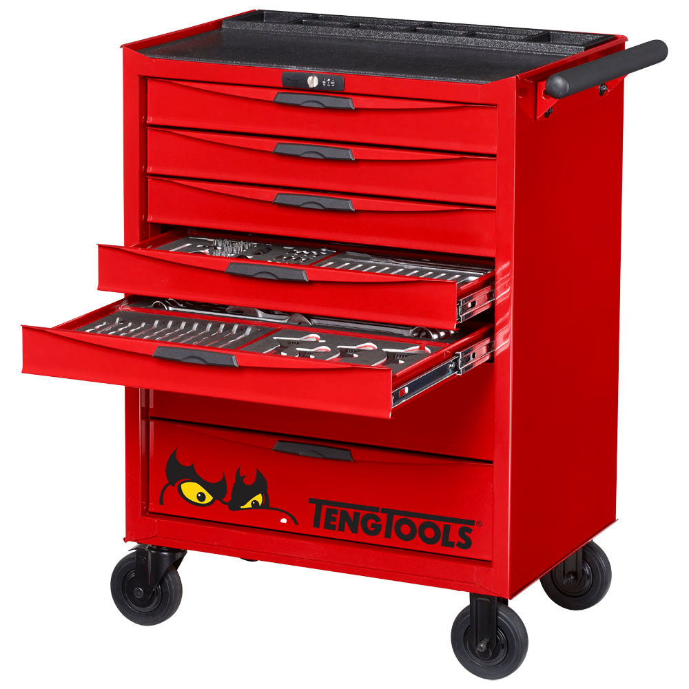 • Comprehensive 333 piece tool kit with the tools laid outin two-colour pre-cut EVA foam which clearly shows if anytools are not in their correct place.• Supplied in the Teng Tools TCW807N drawer roller cabinetall with ball bearing slides and combination lock (no keys).