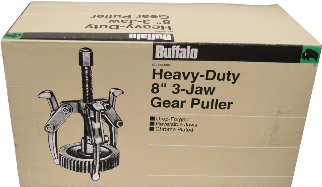This 3 jaw gear puller is drop forged carbon steel with reversible jaws and black finish yoke and shaft. For pulling gears, pulleys and bearings. 200mm (8"). Boxed.